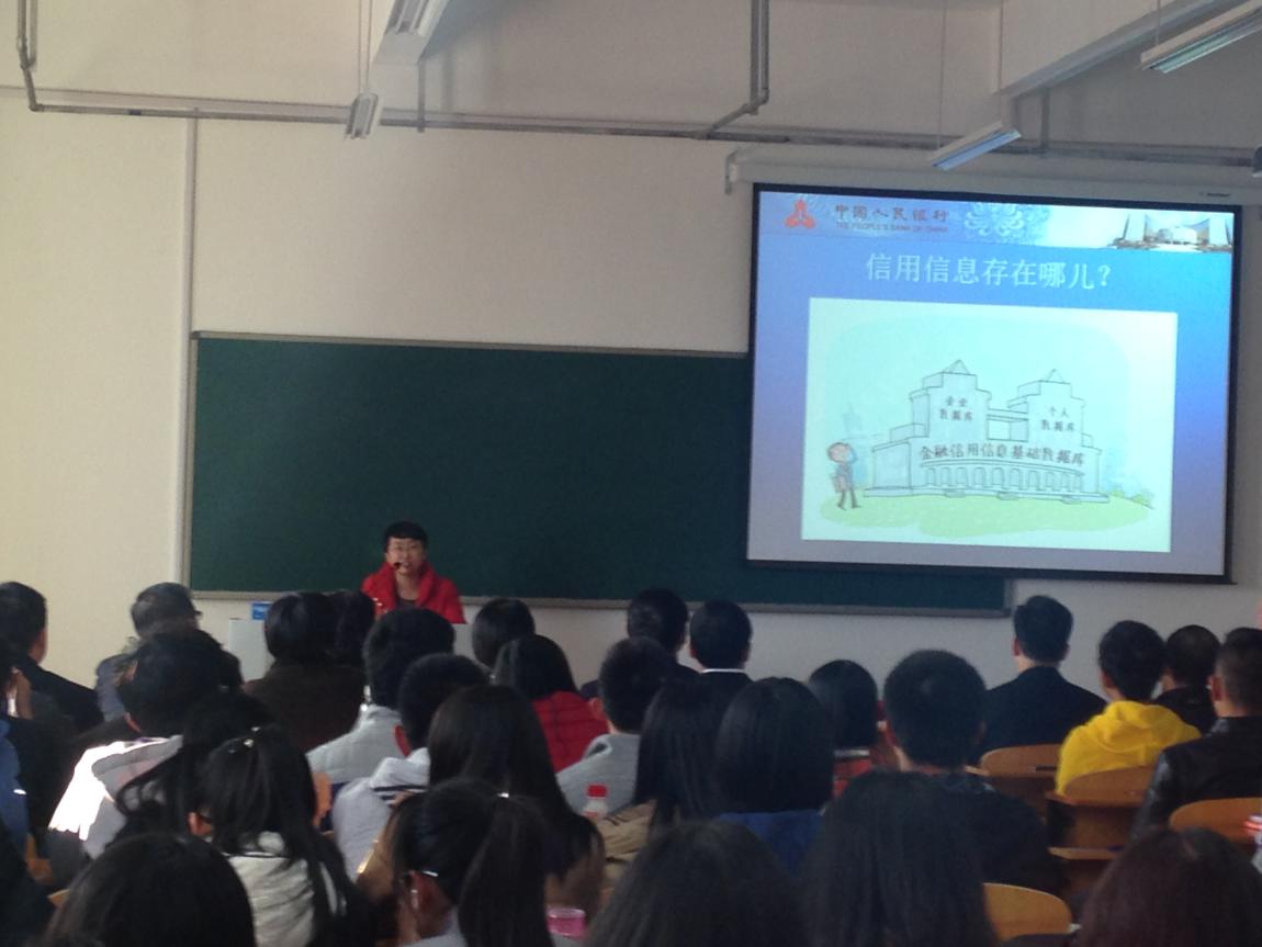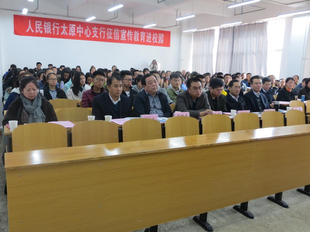 中国人民银行晋中市中心支行刘贵斌行长、中国人民银行太原中心支行征信管理处吴涛处长、中国建设银行晋中分行武忠富副行长、中国农业银行晋中分行修磊副行长、中国邮储银行晋中分行张永红副行长、兴业银行晋中分行靳永志副行长、晋商银行晋中分行王小军副行长、晋中银行郑培宏副行长及经济系160余名师生参加了活动。