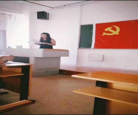 6月30日,系党总支举行预备党员入党宣誓仪式和党员重温入党誓词活动。由学生党支部书记郝瑞花领誓,全体预备党员和老党员面向党旗,庄严宣誓。