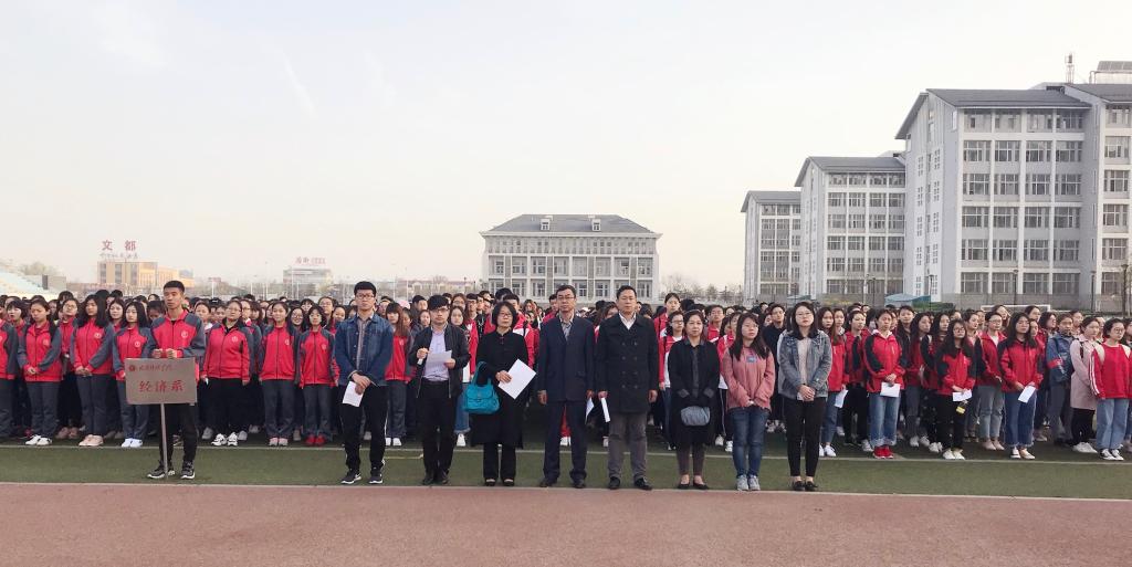2018年4月2日早上7:00,我系在行知体育场举行隆重的升国旗仪式。经济系党总支书记黄海容,经济系主任闫二旺,经济系副主任李繁荣,全体辅导员及大一、大二、大三学生参加升国旗仪式。仪式由系分团委副书记兼学工办副主任牛建平主持。